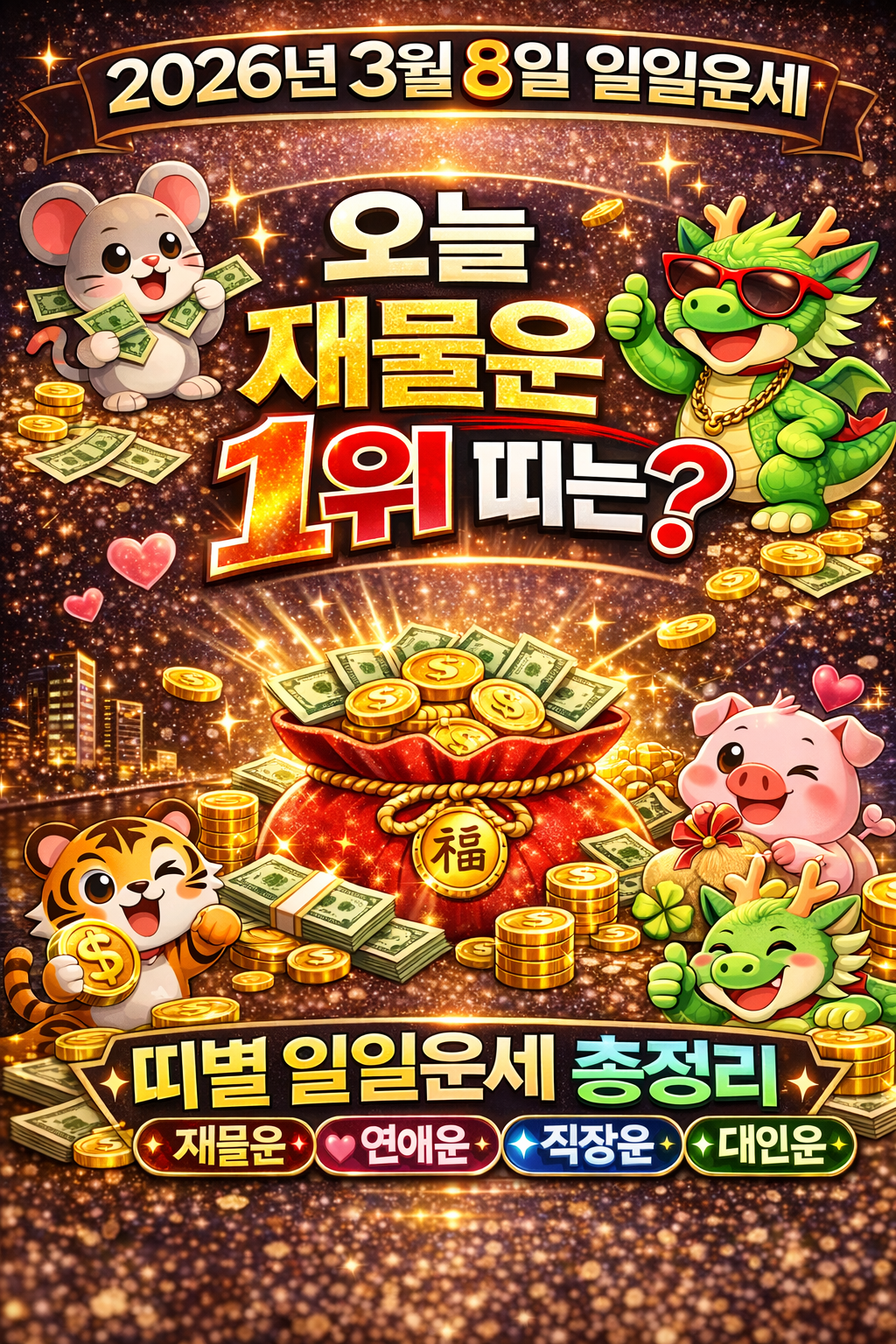 2026년 3월 월간 띠별 운세 🔥 재물운 1위는? 돈 들어오는 띠 공개