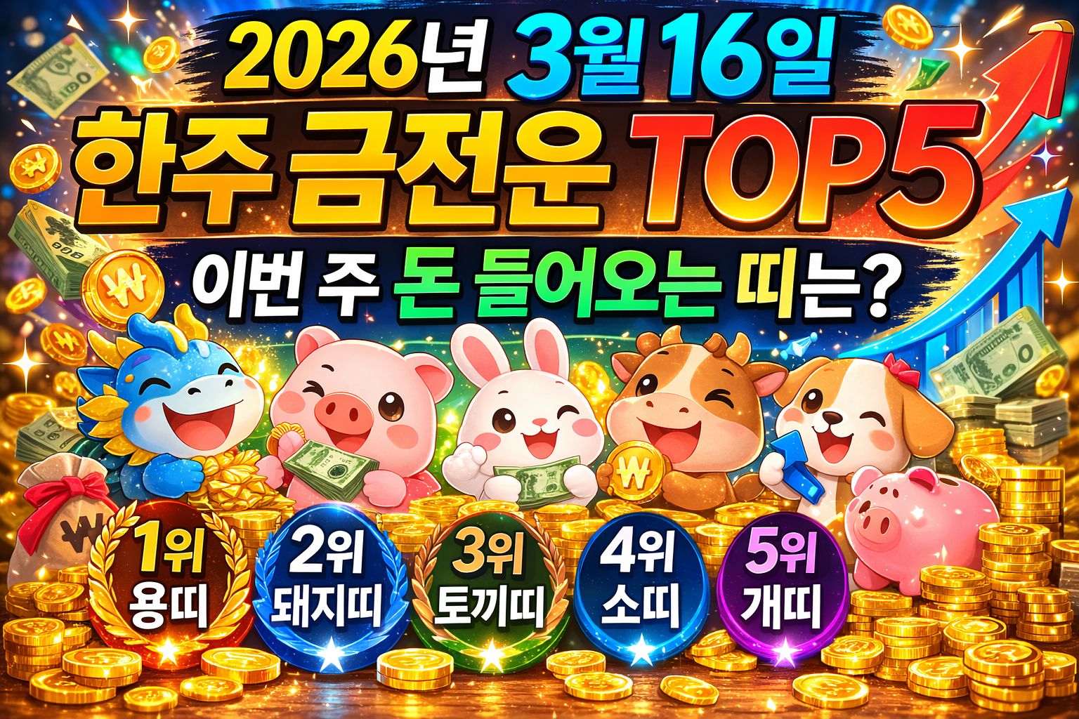 💰 2026년 3월 16일 한주 금전운 TOP5