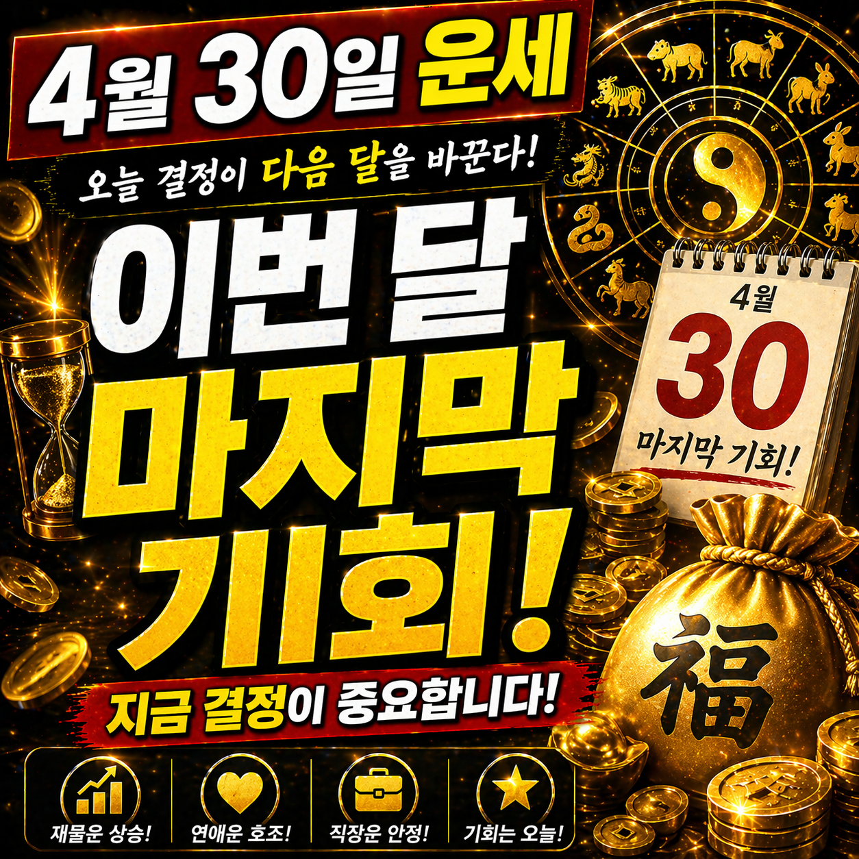 🔮 2026년 4월 30일 운세: 이번 달 마지막 기회